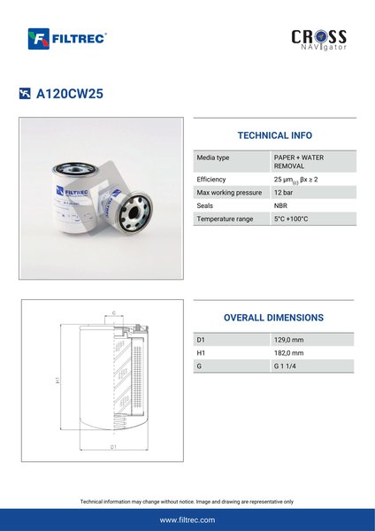 Filtrec A120CW25 Replaces the FilterFinder FF216671B