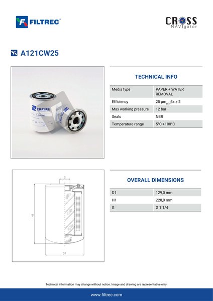 Filtrec A121CW25 Replaces the FilterFinder FF216675B