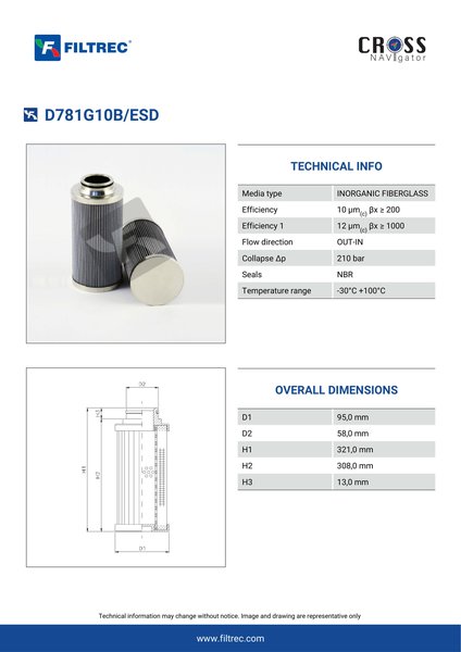 Filtrec D781G10B/ESD Replaces the FilterFinder FF216679B