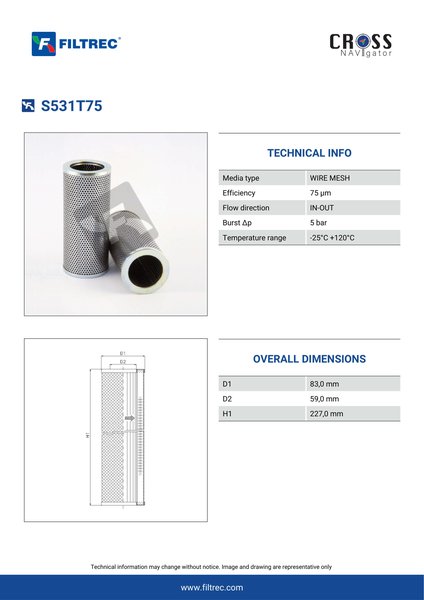 Engineered with their high performance media and a durable design, the S531T75 provides reliable and consistent performance over its lifespan, even in harsh operating environments. When you order from FilterFinder, you can trust that you are getting a reliable and high-quality replacement filter that will keep your system running smoothly.