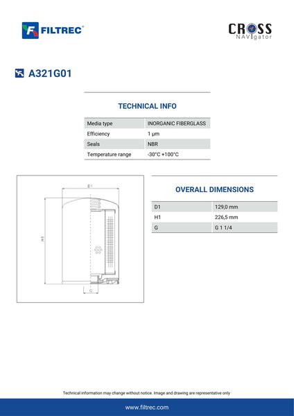 Filtrec A321G01 Replaces the FilterFinder FF216720B