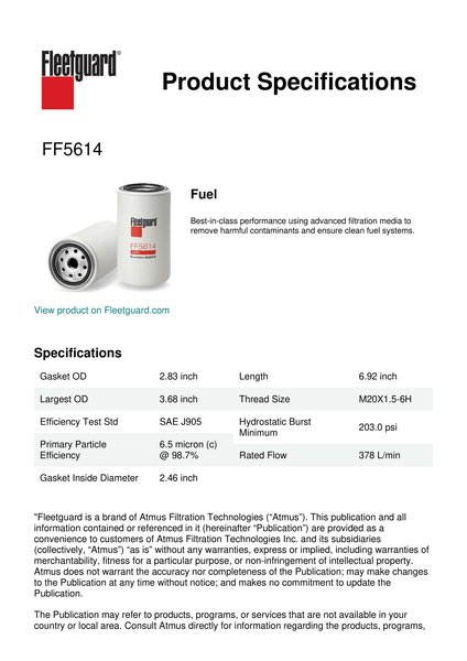 Best-in-class performance using advanced filtration media to remove harmful contaminants and ensure clean fuel systems.Specification