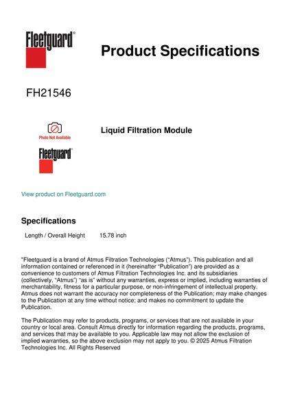 Fleetguard® FH21546 meets or exceeds OE performance requirements and the new challenges of modern engine technology.