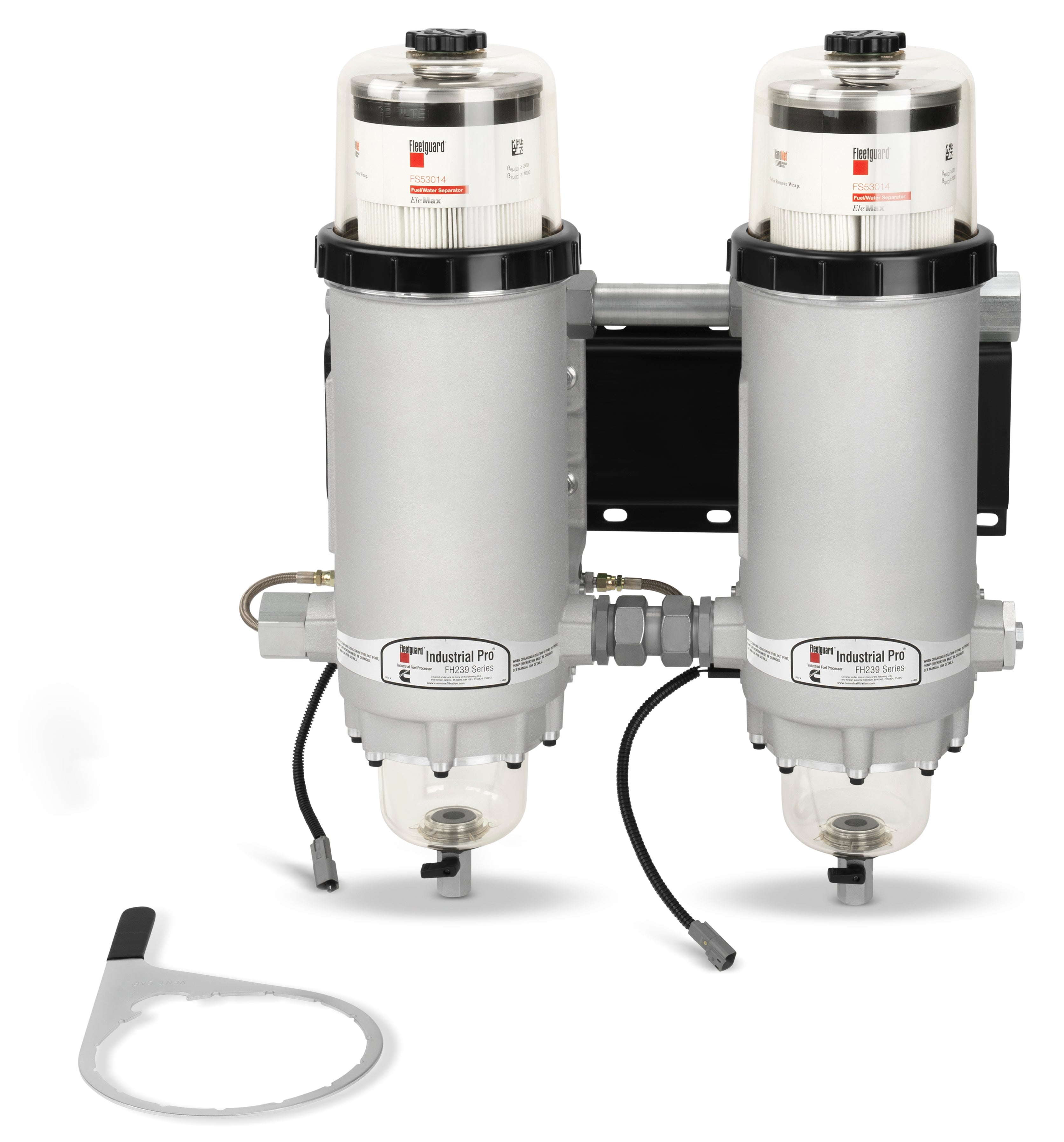 As part of Industrial Pro®FH239 series, the Fleetguard® FH23908 is designed for off-road equipment, construction, agricultural, mobile or stationary applications. Available in a wide range of configurations and specifications such as water-in-fuel (WIF) sensors, improved drain valves, electric priming pumps, priming ports, lighter cast aluminum construction, and low restriction check valve, designed to be the ultimate in fuel/water separation for diesel engines. It combines EleMax™ filter technology and multi-layered NanoNet® media, protecting against shorter filter life and potential fuel system damage caused by water or particle contamination found in poor-quality fuel.