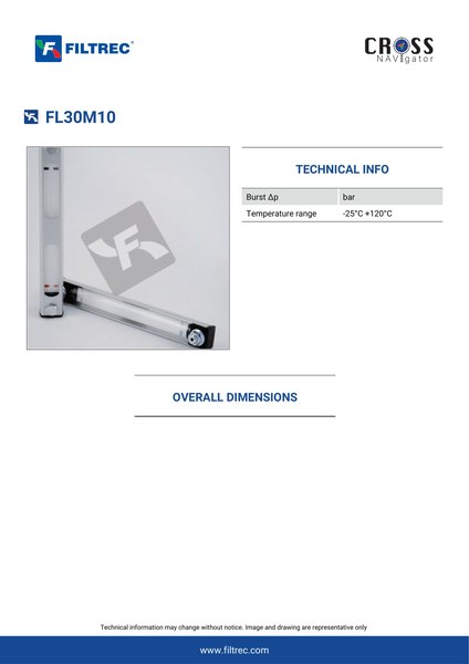 Genuine Filtrec FL30M10. This Filtrec element is designed to meet or exceed the quality and performance of brand OEM’s ensuring superior filtration performance and long-lasting durability.