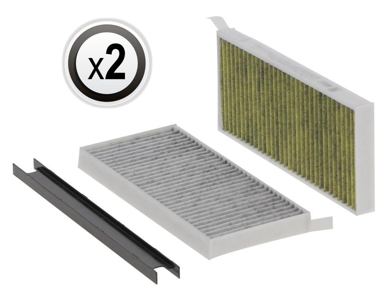Biofunctional MANN-FILTER FreciousPlus cabin air filters - nearly 100% protection against nitrogen oxides, dust, allergens and mould - harmful gases and unpleasant odours are also eliminated and virus aerosols filtered. The three-layer filter technology absorbs almost 100% of allergens, reduces the growth of molds and bacteria by more than 98% and stops fine dust almost completely.Specification