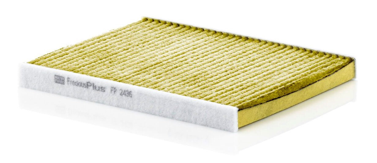 Biofunctional MANN-FILTER FreciousPlus cabin air filters - nearly 100% protection against nitrogen oxides, dust, allergens and mould - harmful gases and unpleasant odours are also eliminated and virus aerosols filtered. The three-layer filter technology absorbs almost 100% of allergens, reduces the growth of molds and bacteria by more than 98% and stops fine dust almost completely.Specification