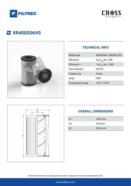 Filtrec XR400G06V0 Replaces the Parker G02635