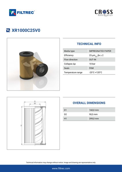 Genuine Filtrec XR1000C25V0. This Filtrec element is designed to meet or exceed the quality and performance of brand OEM’s ensuring superior filtration performance and long-lasting durability.