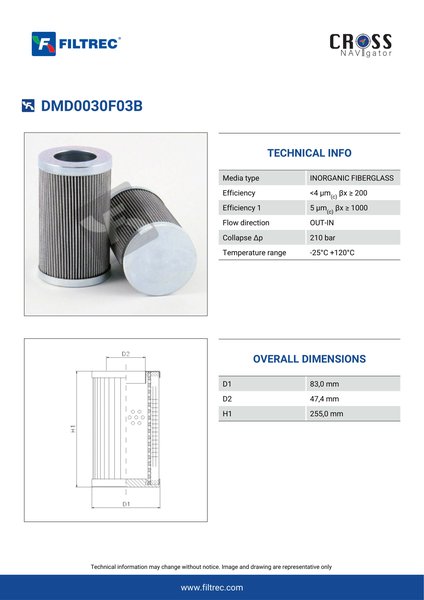 Genuine Filtrec DMD0030F03B. This Filtrec element is designed to meet or exceed the quality and performance of brand OEM’s ensuring superior filtration performance and long-lasting durability.
