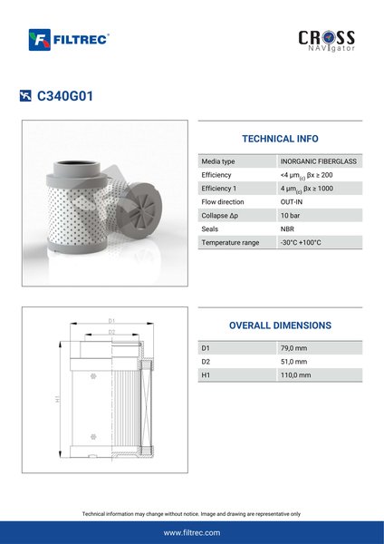 Genuine Filtrec C340G01. This Filtrec element is designed to meet or exceed the quality and performance of brand OEM’s ensuring superior filtration performance and long-lasting durability.