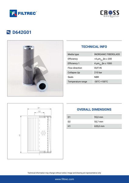 Genuine Filtrec D642G01. This Filtrec element is designed to meet or exceed the quality and performance of brand OEM’s ensuring superior filtration performance and long-lasting durability.