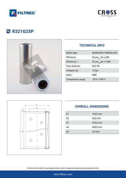 Engineered with their high performance media and a durable design, the R321G25P provides reliable and consistent performance over its lifespan, even in harsh operating environments. When you order from FilterFinder, you can trust that you are getting a reliable and high-quality replacement filter that will keep your system running smoothly.