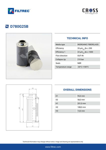 Genuine Filtrec D780G25B. This Filtrec element is designed to meet or exceed the quality and performance of brand OEM’s ensuring superior filtration performance and long-lasting durability.Engineered with their high performance media and a durable design, the D780G25B provides reliable and consistent performance over its lifespan, even in harsh operating environments. When you order from FilterFinder, you can trust that you are getting a reliable and high-quality replacement filter that will keep your system running smoothly.