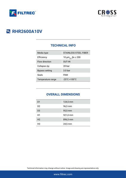 Engineered with their high performance media and a durable design, the RHR2600A10V provides reliable and consistent performance over its lifespan, even in harsh operating environments. When you order from FilterFinder, you can trust that you are getting a reliable and high-quality replacement filter that will keep your system running smoothly.