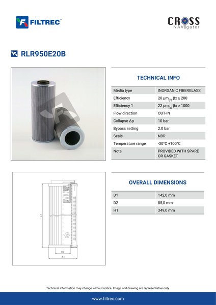 Engineered with their high performance media and a durable design, the RLR950E20B provides reliable and consistent performance over its lifespan, even in harsh operating environments. When you order from FilterFinder, you can trust that you are getting a reliable and high-quality replacement filter that will keep your system running smoothly.