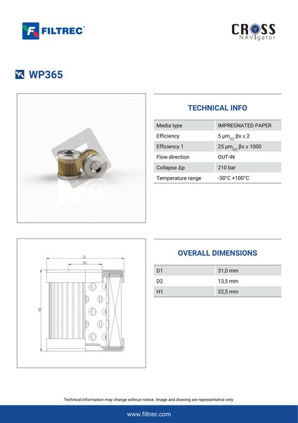 Genuine Filtrec WP365. This Filtrec element is designed to meet or exceed the quality and performance of brand OEM’s ensuring superior filtration performance and long-lasting durability.