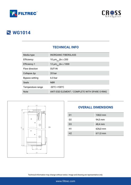 Genuine Filtrec WG1014. This Filtrec element is designed to meet or exceed the quality and performance of brand OEM’s ensuring superior filtration performance and long-lasting durability.