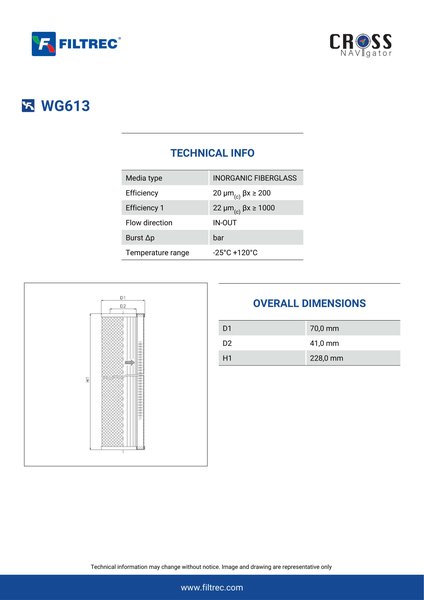 Genuine Filtrec WG613. This Filtrec element is designed to meet or exceed the quality and performance of brand OEM’s ensuring superior filtration performance and long-lasting durability.