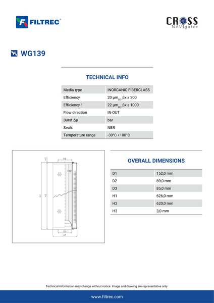 Engineered with their high performance media and a durable design, the WG139 provides reliable and consistent performance over its lifespan, even in harsh operating environments. When you order from FilterFinder, you can trust that you are getting a reliable and high-quality replacement filter that will keep your system running smoothly.