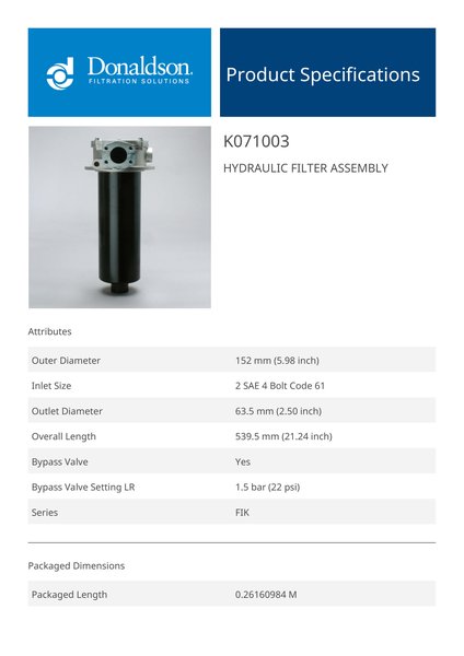 Donaldson K071003 Replacement Hydraulic Filter Assembly
