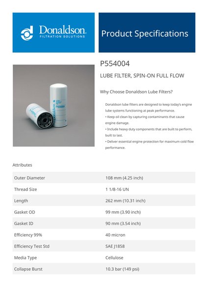 Why Choose Donaldson Lube Filters?Donaldson lube filters are designed to keep today’s engine lube systems functioning at peak performance.
