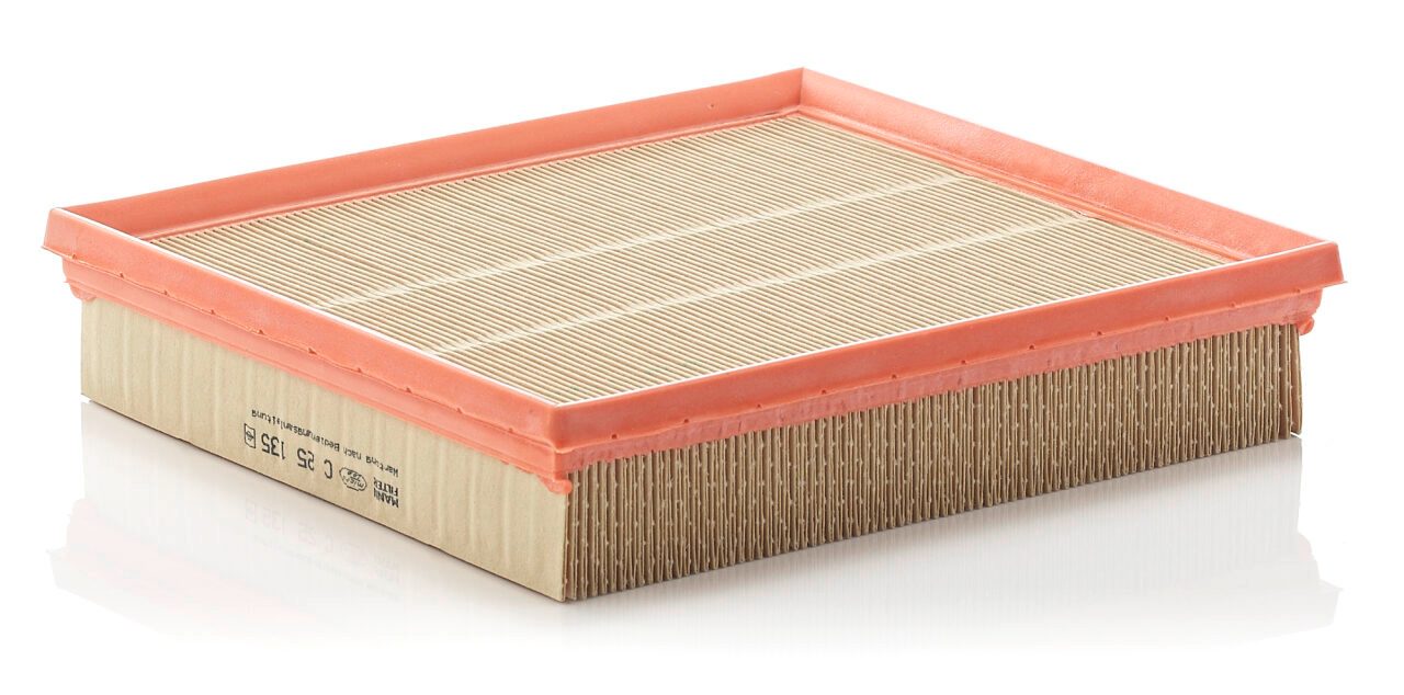 High-quality MANN-FILTER air filters for clean air intake and optimum protection for your engine, mass air flow sensor & other sensitive components / They meet requirements of modern engine technology. Highest dirt holding capacity and dirt separation efficiency, low flow resistance and high pleat stability ensure functional reliability during the entire service interval.