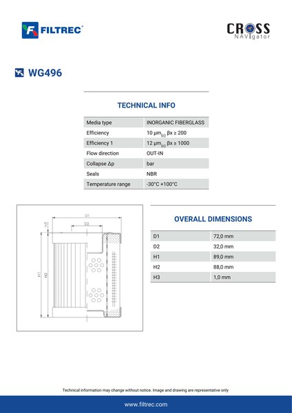 Engineered with their high performance media and a durable design, the WG496 provides reliable and consistent performance over its lifespan, even in harsh operating environments. When you order from FilterFinder, you can trust that you are getting a reliable and high-quality replacement filter that will keep your system running smoothly.