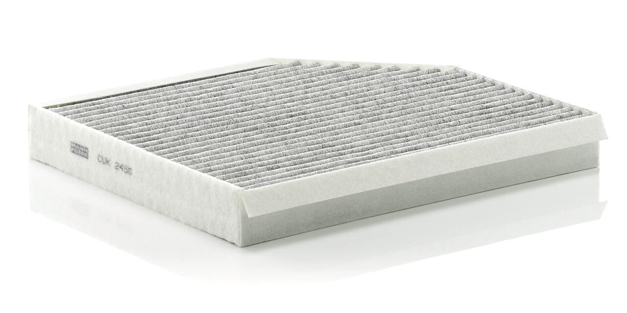 High-quality MANN-FILTER cabin filters with active carbon - nearly 100% protection from particles like pollen, diesel soot & tyre abrasion / Additional protection from harmful gases & unpleasant odour. The trated highly-effective activated carbon gives protection against harmful gases such as ozone, nitrogen oxide or sulphur dioxide and eliminates unpleasant odours during the entire service interval.
