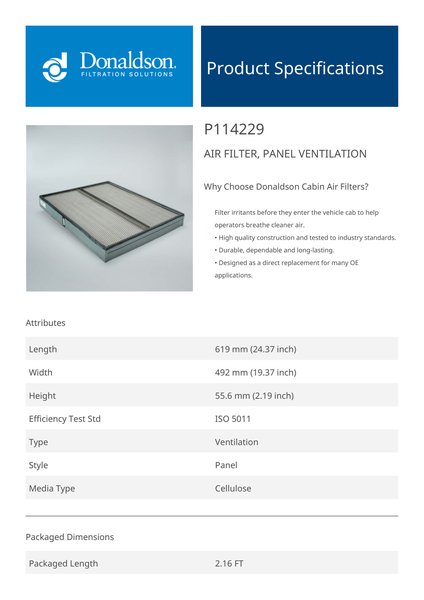Donaldson P114229 Replacement Air Panel, Ventilation