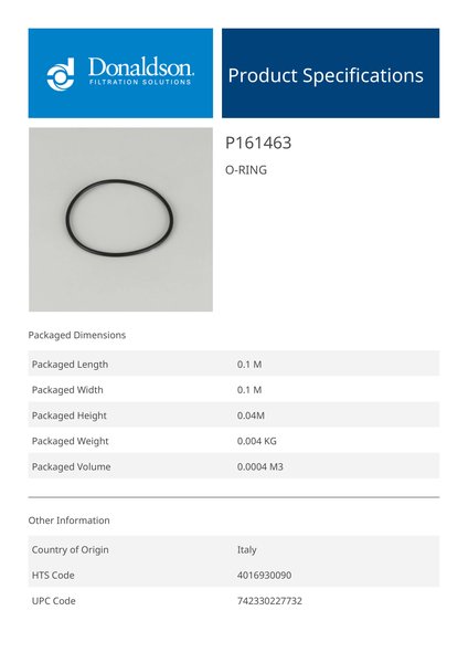 Genuine Donaldson P161463 Gasket is designed to provide reliable performance in gasket applications. Built with high-quality materials, it ensures consistent functionality and durability.Ideal for industrial, automotive, or heavy-duty environments, this component enhances system performance and longevity.