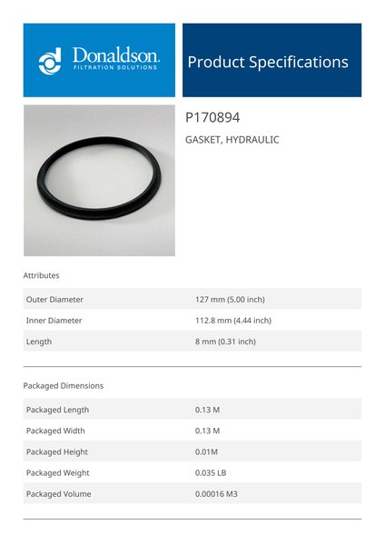 Donaldson P170894 Replacement Gasket, Liquid Filter
