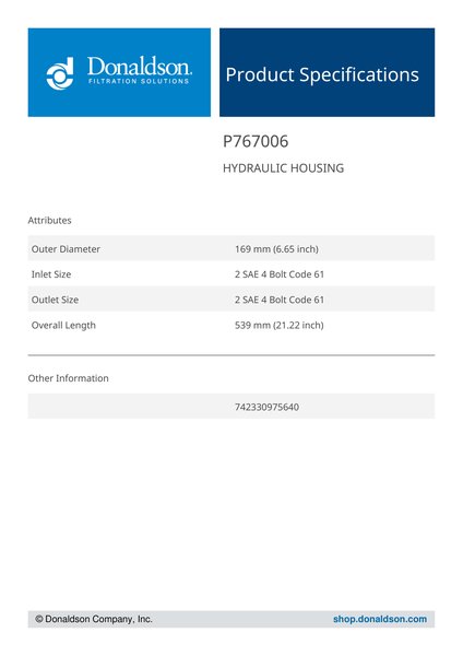 Genuine Donaldson P767006 Hydraulic Assembly is designed to provide reliable performance in hydraulic assembly applications. Built with high-quality materials, it ensures consistent functionality and durability.