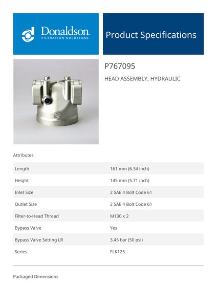 Donaldson P767109 Replacement Head Assembly Hydraulic