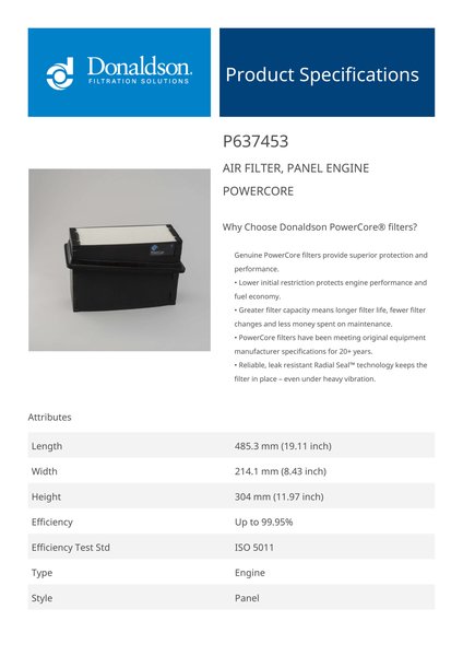 Why Choose Donaldson PowerCore® filters?Genuine PowerCore filters provide superior protection and performance.