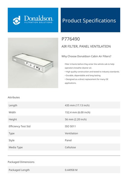 Why Choose Donaldson Cabin Air Filters?Filter irritants before they enter the vehicle cab to help operators breathe cleaner air.