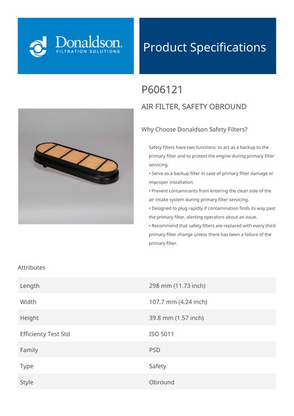 Why Choose Donaldson Safety Filters?Safety filters have two functions: to act as a backup to the primary filter and to protect the engine during primary filter servicing.
