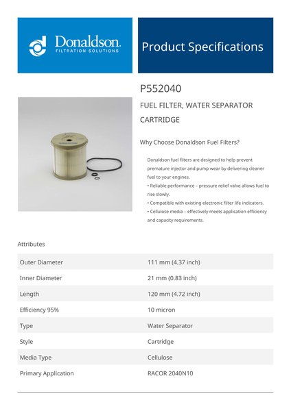 Why Choose Donaldson Fuel Filters?Donaldson fuel filters are designed to help prevent premature injector and pump wear by delivering cleaner fuel to your engines.