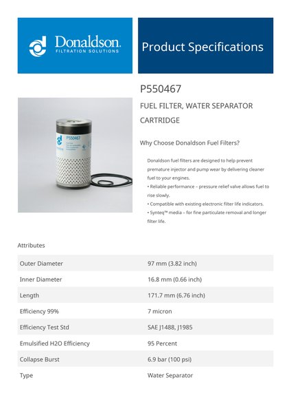 Why Choose Donaldson Fuel Filters?Donaldson fuel filters are designed to help prevent premature injector and pump wear by delivering cleaner fuel to your engines.
