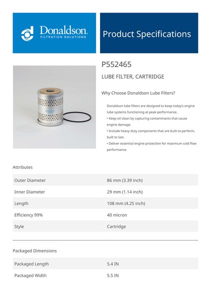 Why Choose Donaldson Lube Filters?Donaldson lube filters are designed to keep today’s engine lube systems functioning at peak performance.