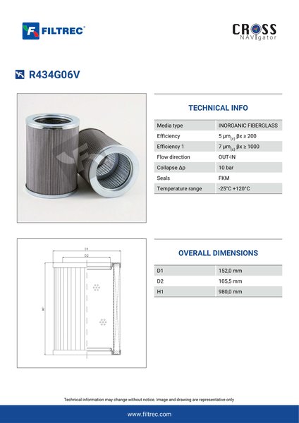 Genuine Filtrec R434G06V. This Filtrec element is designed to meet or exceed the quality and performance of brand OEM’s ensuring superior filtration performance and long-lasting durability.