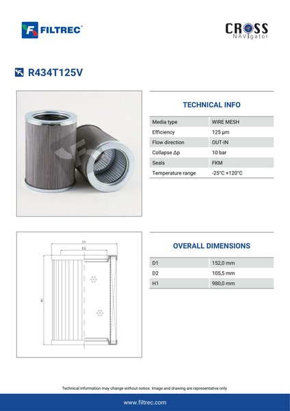 The efficiency of the element is shown using the Micron (µ) and Beta (β) ratings. The micron rating indicates the size of the particle being filtered and the beta rating the efficiency, calculated as 1/β.