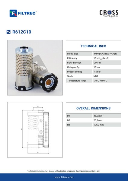 Engineered with their high performance media and a durable design, the R612C10 provides reliable and consistent performance over its lifespan, even in harsh operating environments. When you order from FilterFinder, you can trust that you are getting a reliable and high-quality replacement filter that will keep your system running smoothly.
