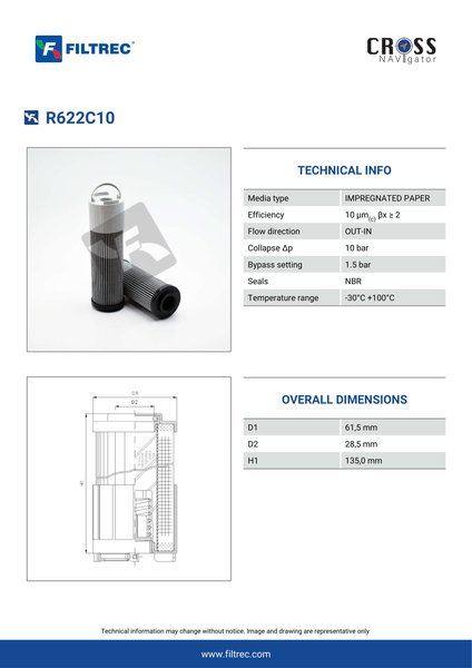 Engineered with their high performance media and a durable design, the R622C10 provides reliable and consistent performance over its lifespan, even in harsh operating environments. When you order from FilterFinder, you can trust that you are getting a reliable and high-quality replacement filter that will keep your system running smoothly.