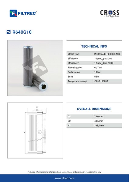 Genuine Filtrec R640G10. This Filtrec element is designed to meet or exceed the quality and performance of brand OEM’s ensuring superior filtration performance and long-lasting durability.Engineered with their high performance media and a durable design, the R640G10 provides reliable and consistent performance over its lifespan, even in harsh operating environments. When you order from FilterFinder, you can trust that you are getting a reliable and high-quality replacement filter that will keep your system running smoothly.