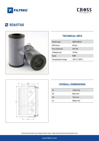 Engineered with their high performance media and a durable design, the R265T60 provides reliable and consistent performance over its lifespan, even in harsh operating environments. When you order from FilterFinder, you can trust that you are getting a reliable and high-quality replacement filter that will keep your system running smoothly.