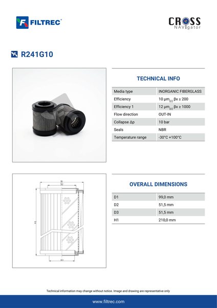 Engineered with their high performance media and a durable design, the R241G10 provides reliable and consistent performance over its lifespan, even in harsh operating environments. When you order from FilterFinder, you can trust that you are getting a reliable and high-quality replacement filter that will keep your system running smoothly.