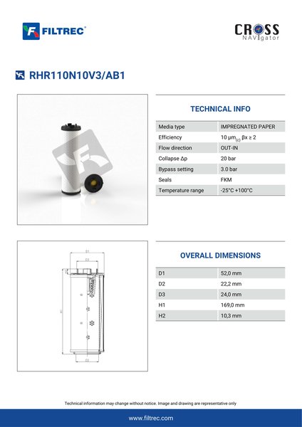 Engineered with their high performance media and a durable design, the RHR110N10V3/AB1 provides reliable and consistent performance over its lifespan, even in harsh operating environments. When you order from FilterFinder, you can trust that you are getting a reliable and high-quality replacement filter that will keep your system running smoothly.