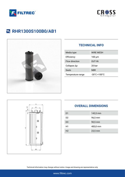 Genuine Filtrec RHR1300S100B0/AB1