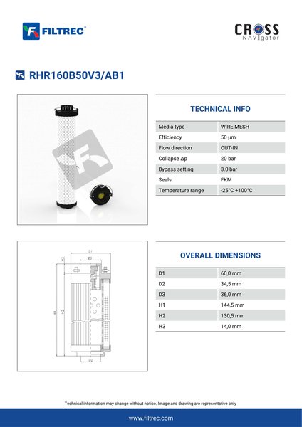 Genuine Filtrec RHR160B50V3/AB1
